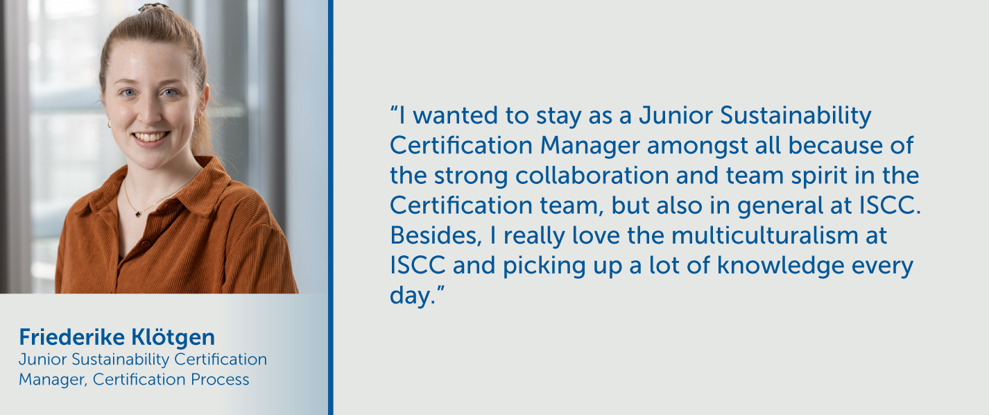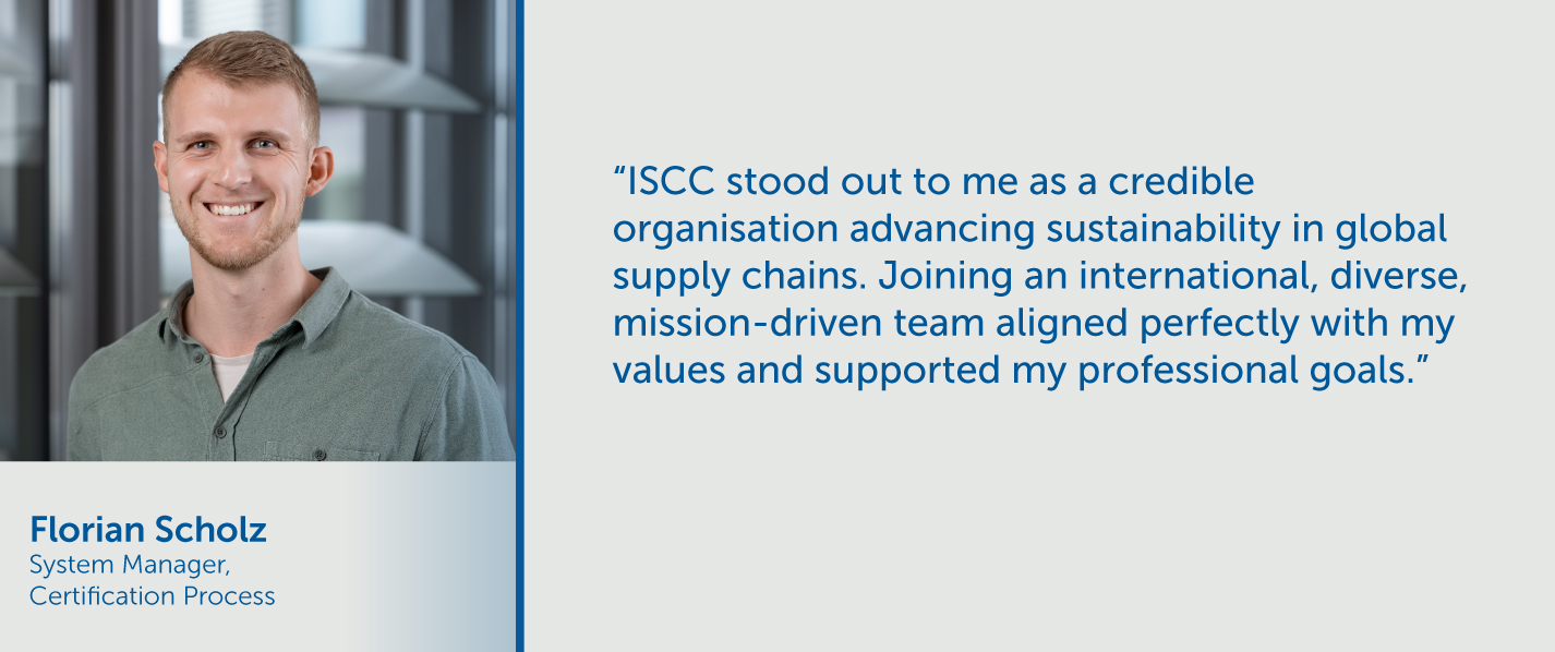 At ISCC, we support sustainable, traceable, and deforestation-free supply chains through our globally recognised certification schemes. As a leading certification standard, we enable businesses worldwide to monitor their value chains efficiently – and through your career with us, you’ll help shape a more sustainable future.