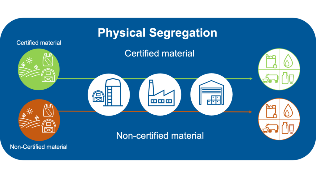 Deliveries of physically segregated materials contain 100% sustainable ISCC certified material. This approach requires separate/parallel processes for production, storage and transportation and allows for strong claims that directly refer to the physical characteristics of the material.