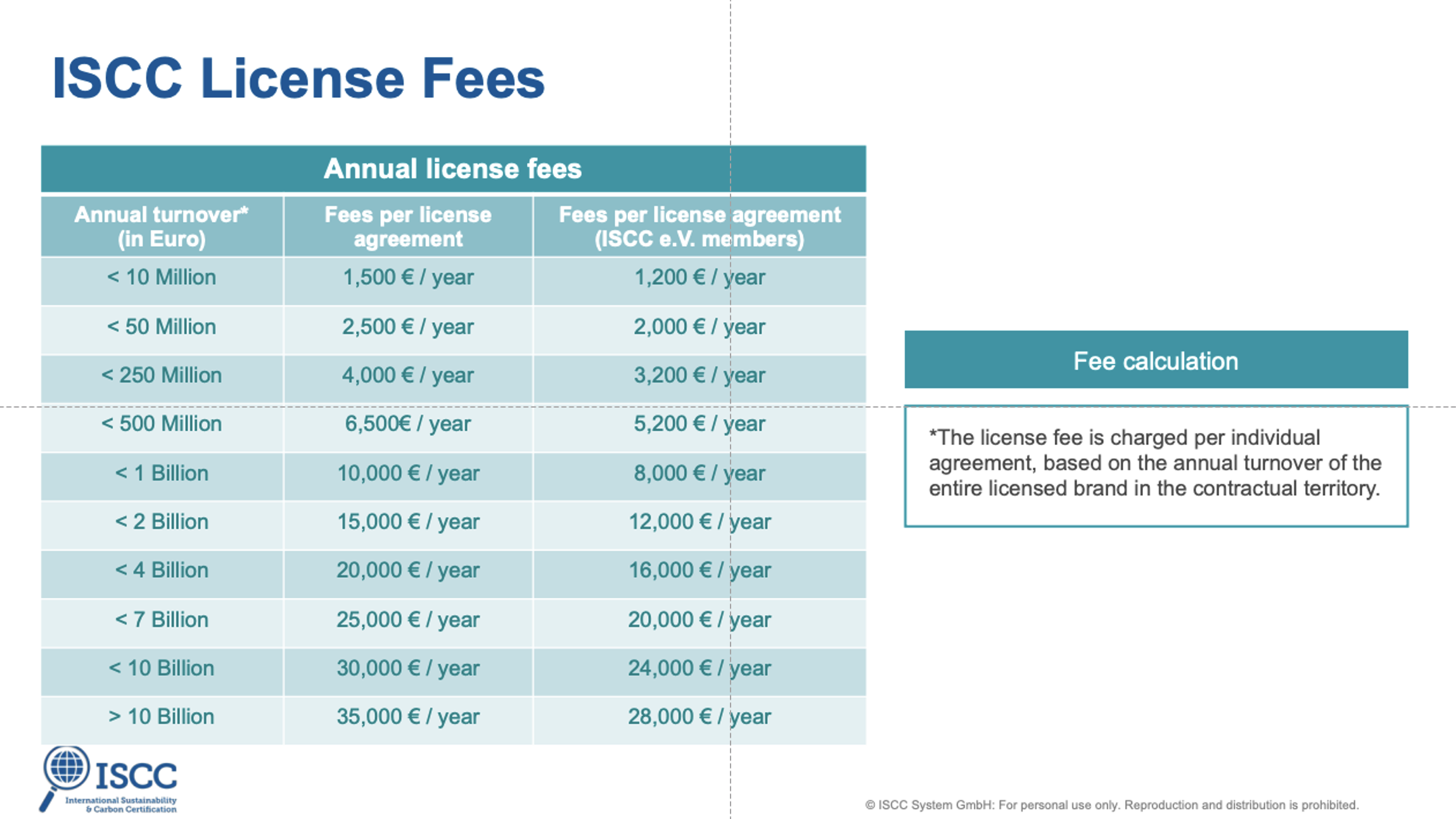 Please be aware that the annual turnover is referring to the annual turnover of the entire licensed brand, not only limited to the products that are related to ISCC-certified materials.