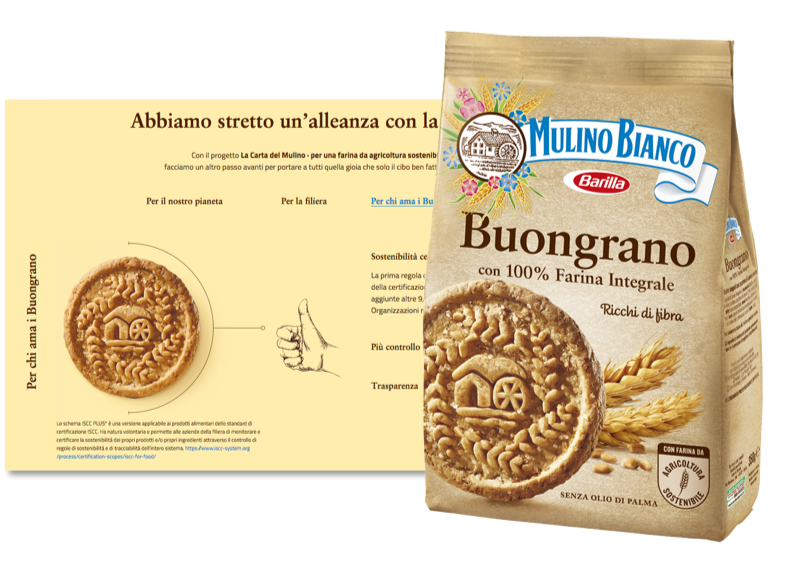 The company’s largest bakery, in Castiglione delle Stiviere, near Mantua, which produces 108,000 tonnes of biscuits per year, has already gained ISCC PLUS certification. The flour mill in Galliate and some of the farmers who supply it with wheat, have also become certified in 2019. Buongrano is the first biscuit containing ISCC certified flour. Barilla has chosen the segregation model so Carta del Mulino wheat is kept separate. By 2022 six bakeries and fourteen mills will be ISCC certified and then all of Mulino Bianco’s products will be made from certified soft wheat.